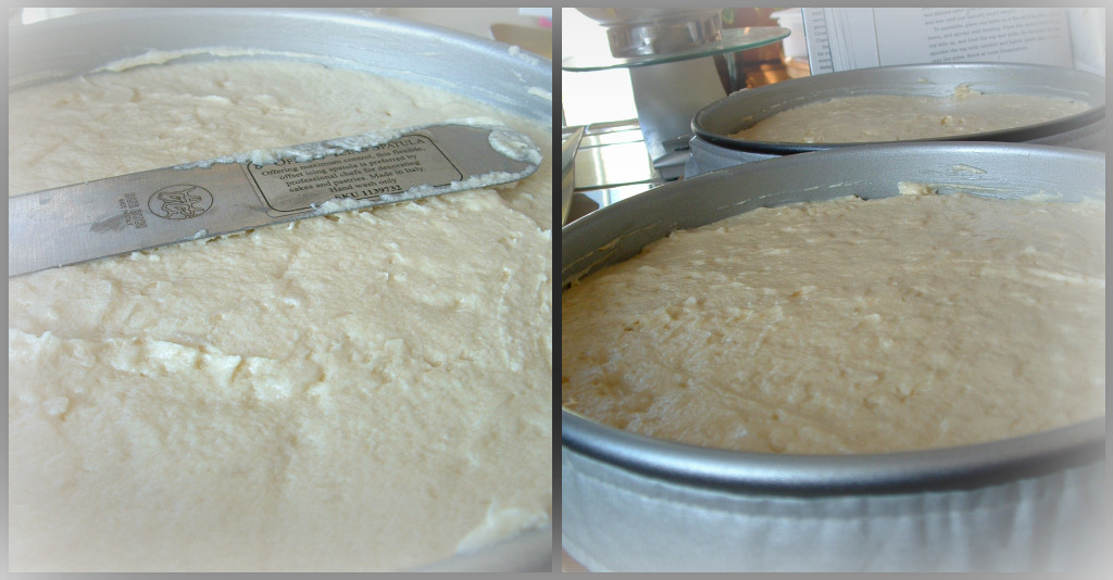 - Split the batter evenly into the pans. Then smooth the top with a knife.