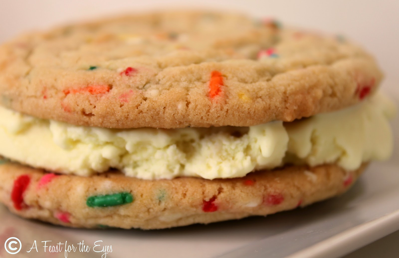 What perfect timing, when I spotted a recipe for “Funfetti Cookies“. I will post the recipe for these cookies, next, because you will want to make them. I had this idea that the cookies would be a perfect complement to the ice cream.