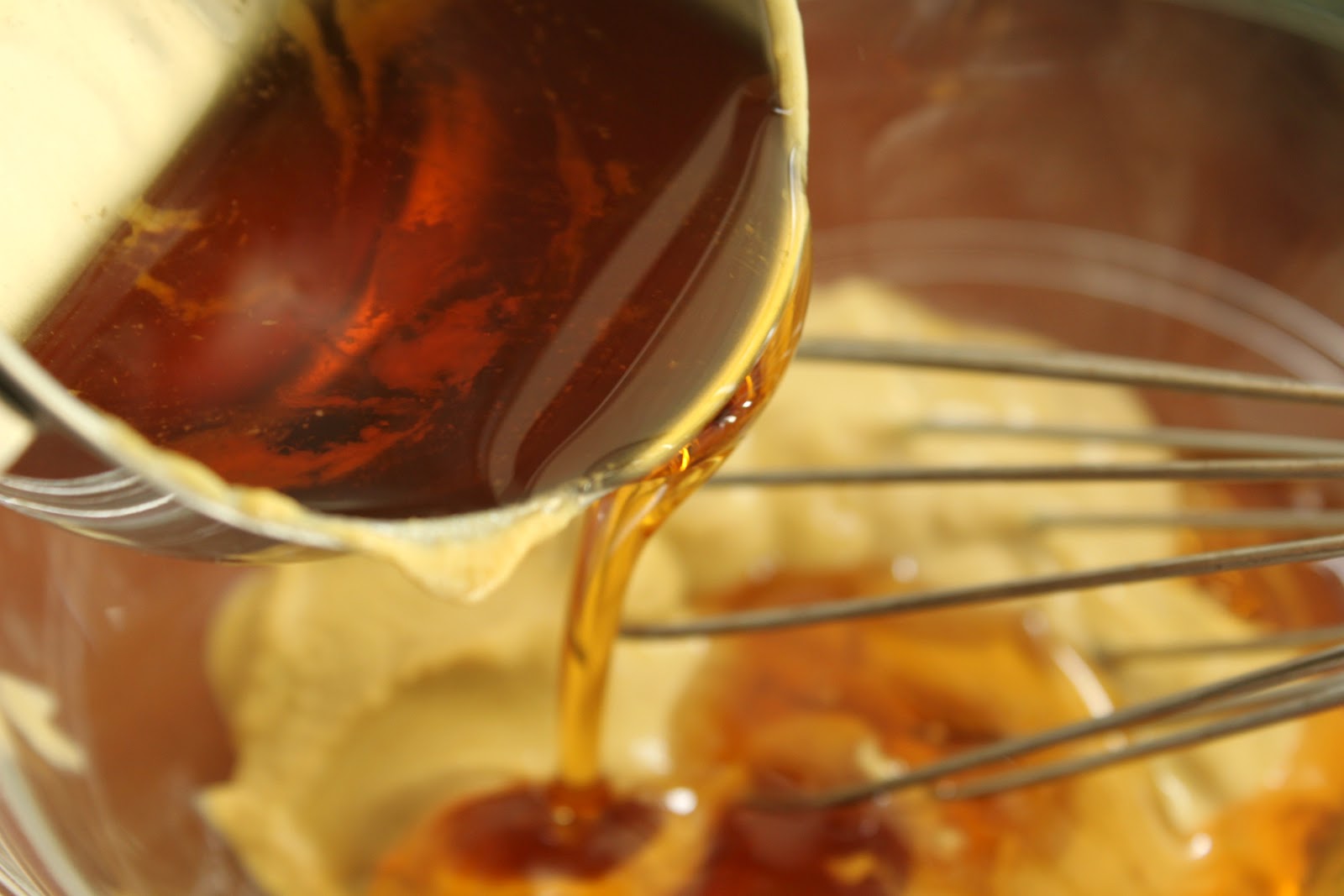 - Whisk together the mustard, maple syrup, and rice vinegar. NOTE: You can adjust the ratio of mustard to maple syrup. If you prefer that the mustard is the dominant flavor, increase the ratio to 1/2 cup mustard to 1/4 cup maple syrup.
