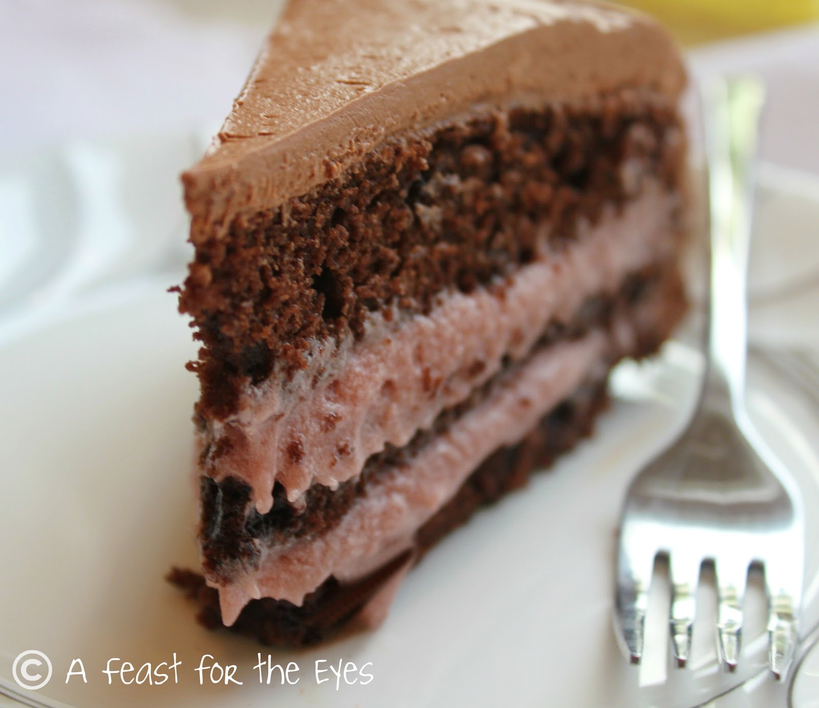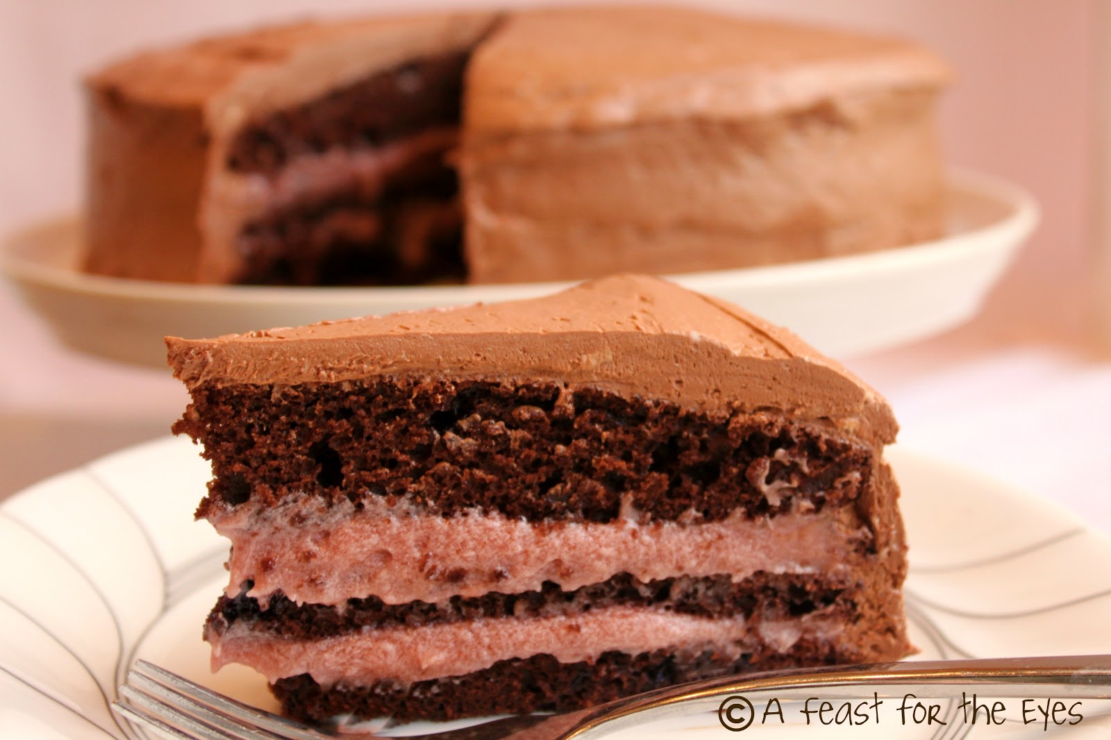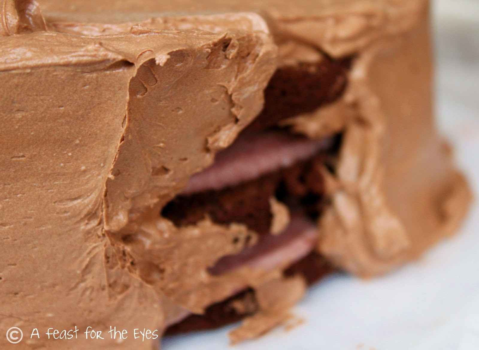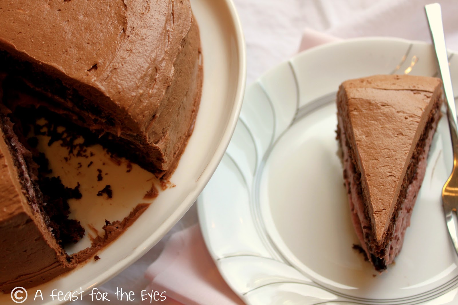 Chocolate Mocha Cake with Raspberry Cream and Chocolate Fluff Frosting
