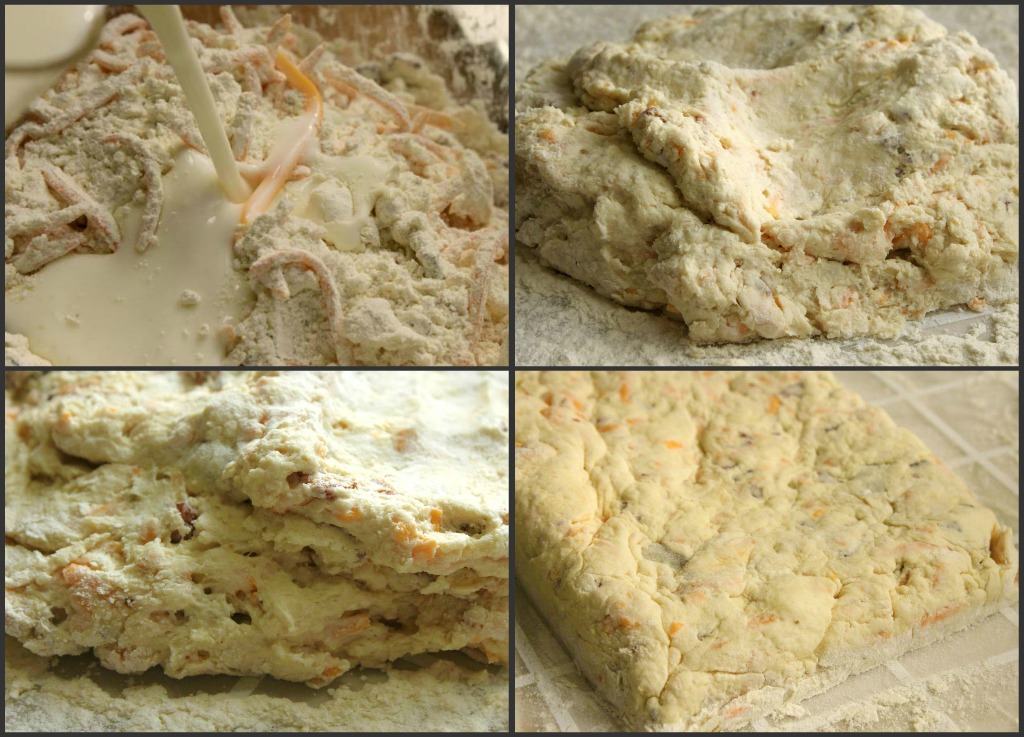 - NOTE: Don't knead the dough, just fold it over on itself to create tender layers.
