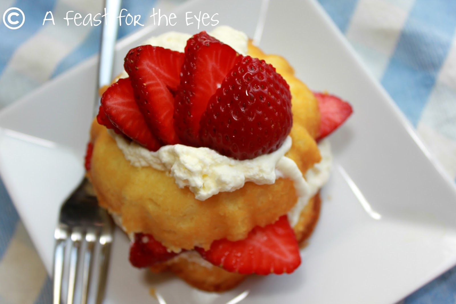 Strawberry season begins in Spring, but lasts well through August, in my part of the Salinas Valley. I just purchased a new mini bundt cake pan, and decided to use the same yellow cake recipe for strawberry shortcake.