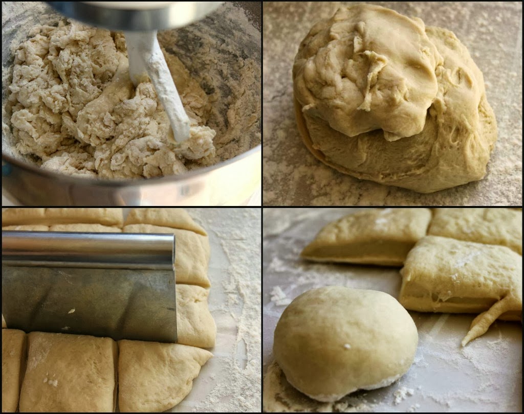 - Variation: You can mix all the ingredients in a Kitchen Aid Stand mixer- with the dough attachment. Knead until the dough is elastic and smooth– 5 to 8 minutes. Divide dough into 10 to 12 equal pieces.
