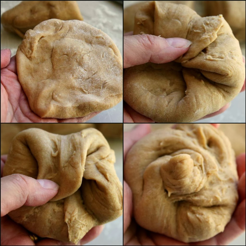 - Shape each piece into a square. Don't worry about perfection. To shape the hamburger roll, grab one corner and fold it in, repeat with all four corners. Grab the center, and twist. Place onto a lightly floured surface and gently roll around (folded side down) and then gently shape the sides into a round shape.