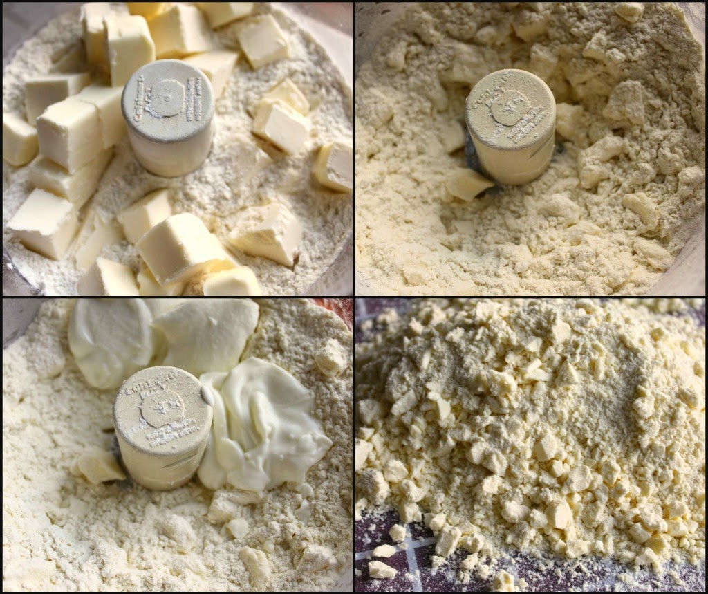 - Whisk together the flour, salt, and baking powder. Add the butter, working it in to make a coarse/crumbly mixture. Leave most of the butter in large, pea-sized pieces. Note: I like to use my food processor for less elbow grease.