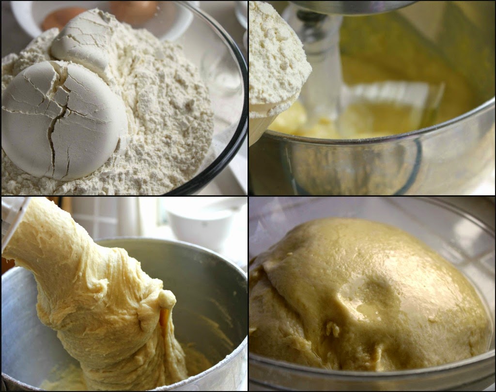 Making bread dough, with my stand mixer reduces that amount of elbow grease that I need. For the wet ingredients, I’m using scalded milk, butter and eggs. Once the dough has been mixed and kneaded, it’s placed into an oiled bowl, covered and left to rise for 2-3 hours.