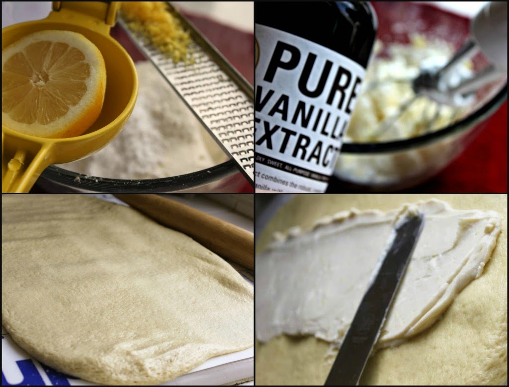 While the dough was proofing, I made the cream cheese filling: cream cheese, a little flour, lemon zest and juice, confectioner’s sugar and pure vanilla.