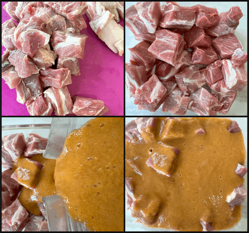 For the pork, trim away any excess fat. Cut the pork into large chunks.